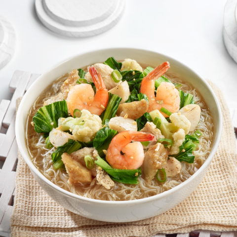 Vermicelli Soup topped with Shrimp, Chicken, Fish Cakes, Fish Balls and Assorted Vegetables